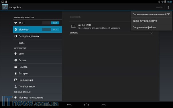 Планшет ImPAD 8901 получил два динамика. Расположены они на правой и левой боковых гранях, и, что приятно, обладают мощностью звука, достаточно даже для того, чтобы посмотреть фильм, скажем, сидя в парке, не прибегая к "посредничеству" наушников. Но есть и одно "но". В процессе работы пользователь может прикрывать выводы ладонями рук. Конечно же, неплотно и не всегда, но, к примеру, у меня это получалось довольно таки часто.