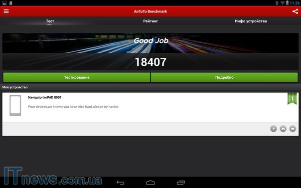 При беглом осмотре Impression ImPAD 8901 кажется, что новинка несколько толще своих реальных 9 мм. Тем не менее, никакого дискомфорта в работе нет! Да, устройство получило полностью глянцевый корпус, тем не менее, аппарат вполне удобно держать в руке! Впрочем, длительная непрерывная работа, надо полагать, потребует какой-либо подставки для него - все же 445 грамм на выходе будут ощутимы даже для руки мужчины.