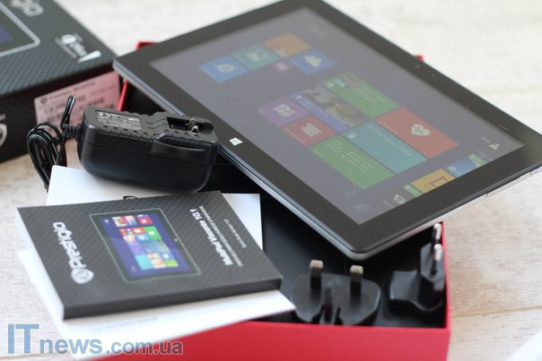 Открыв коробку, пользователь найдет в ней, разумеется, сам планшет. Кроме него, здесь зарядное устройство, а также адаптеры под различный класс розеток плюс необходимая документация и вкладыш с кодами активации используемых продуктов Microsoft.