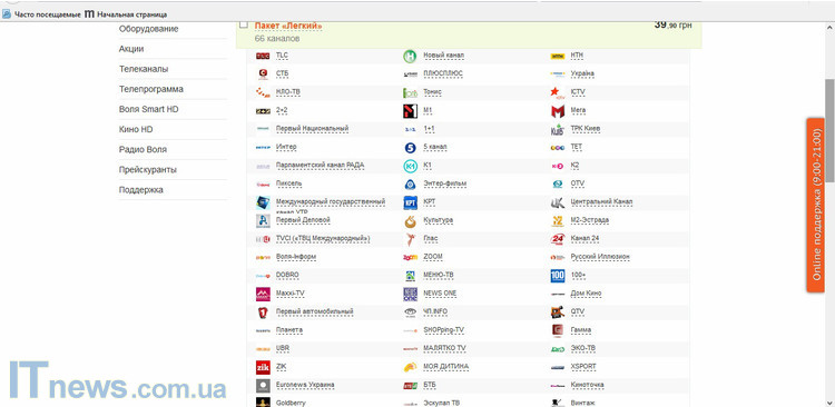 Популярный украинский провайдер "Воля" сегодня предлагает один из самых доступных ТВ-пакетов "Легкий". Всего за 39,90 гривен в месяц пользователь получает возможность смотреть 63 каналов, включая национальные в цифровом качестве изображения и звука.