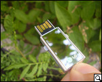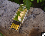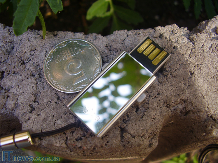 Не на последнем месте оказался и дизайн накопителя. Большей частью флешку покрывает матовый гладкий пластик серебристого цвета. Он не оставляет на себе отпечатков, и устойчив к царапинам. Однако, лицевая панель устройства, на которой "красуется" логотип компании, имеет глянцевую зеркальную поверхность. Здесь отпечатки будут хорошо видны, да и царапины, наверняка, появятся очень скоро. Однако же нельзя оспорить тот факт, что большинство девушек от такого решения будут в восторге, ведь теперь флешку можно использовать как зеркальце.