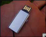 Достичь таких компактных размеров не последней мерой удалось благодаря выдвижному USB-коннектору, который "прячется" в теле накопителя, когда не находится в использовании. Для того, чтобы подготовить запоминающее устройство к работе, необходимо всего лишь нажать на два выступающих ушка, расположенных по краям флешки, и потянуть их вверх. Когда же все операции чтения/записи будут окончены, нужно повторить те же действия с точностью до наоборот.