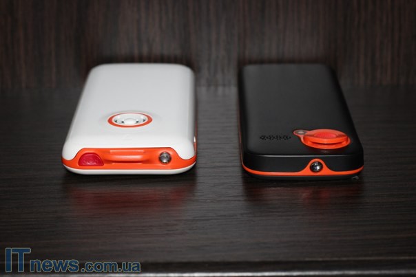 Тыльная панель Mini2 примечательна сеткой динамика громкой связи. Однако, помимо нее, другие элементы здесь не предусмотрены – камеры, как помним, нет, а кнопка SOS вынесена на верхний торец. Здесь же в Mini2 обустроена и петля для крепления шнурка. Помимо всего упомянутого, в обеих моделях на верхнем торце находится фонарик.
