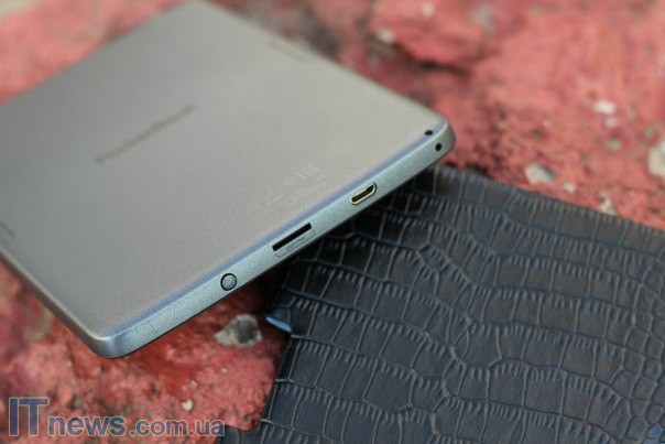 Еще одна клавиша, расположенная на нижнем торце, "отвечает" за включение/выключение питания. Помимо нее, кстати говоря, здесь же предусмотрена петля для крепления страховочного шнурка, слот для карт microSD и порт micro-USB.