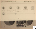 Имеется автоматическая и ручная регулировка подсветки. В первом случае соответствующий датчик срабатывает без нареканий. Ручная регулировка доступна из соответствующего подменю настроек. Доступ к последнему осуществляется в два клика: нажатие по странице во время чтения или пребывания в меню, затем прикосновение к схематической лампочке в верхней части диалогового окна. На практике вполне удобно.