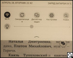 Что же касается практики, то с учетом того, что работал я с ридером по 3-3,5 часа в день, частенько задействовал Wi-Fi и подсветку выше среднего уровня, одного полного заряда мне хватило чуть больше чем на неделю. С учетом упомянутых особенностей мне такой результат кажется неплохим.