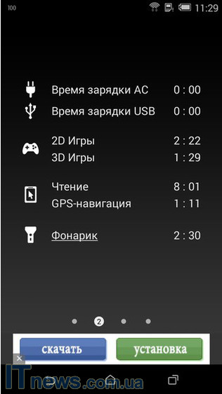 Официально заявлено об автономности в режиме ожидания до 622 часов, либо же до 15 часов в режиме разговоров 3G.