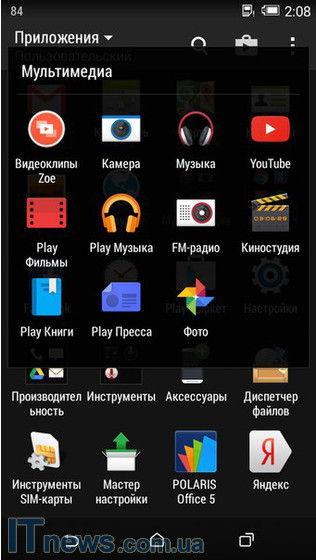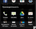 Что касается предустановленных приложений, стоит отметить "Видеоклипы Zoe", FM-приемник, полный пакет клиент-сервисов Google, Facebook, POLARIS Office 5 и многое другое.