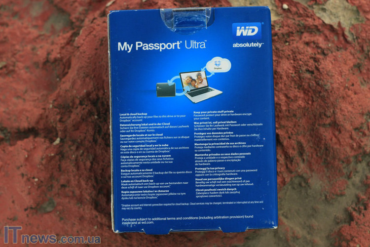 На противоположную стенку упаковки производитель вынес информацию о том, какие возможности получает пользователь с WD My Passport Ultra (2ТБ), задействовав при этом фирменное ПО производителя диска. Но об этом несколько ниже.