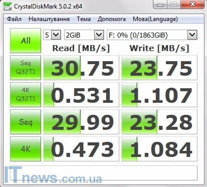 Поскольку рассматриваемый накопитель совместим с USB 2.0, я решил посмотреть возможности его и в этом плане.