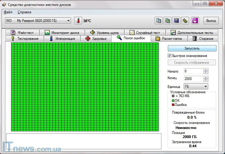 Среди возможностей утилиты WD Drive Utilities стоит отметить диагностику накопителя, а также проведение его быстрого или полного тестирования, задание времени на переход в спящий режим или же отключение его, выполнение форматирования и многое другое.