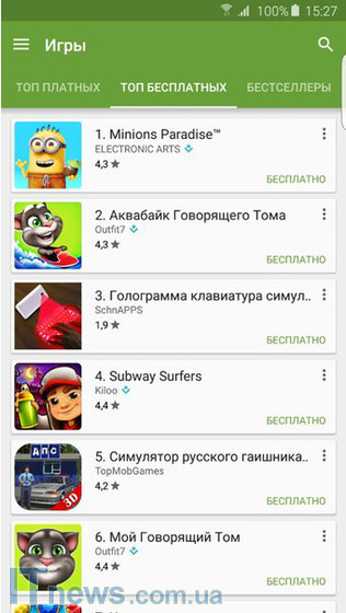 Ушел из рейтинга "Мой Говорящий Том", три новичка, два из которых, на мой взгляд, долго здесь не задержатся, а также знакомые нам "Аквабайк Говорящего Тома" и Subway Surf