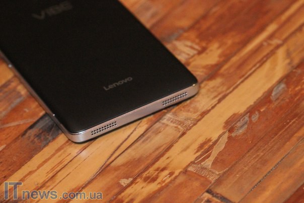 Тыльная часть полностью прикрывается крышкой аккумуляторного блока, в которой имеется вывод под глазок камеры и вспышки. Кроме того, непосредственно на самой крышке два логотипа – Lenovo и VIBE. Они нанесены специальными красками.