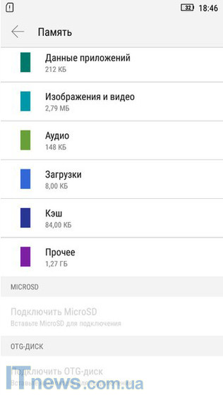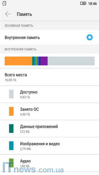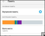 Объем встроенной пользовательской памяти 16 ГБ. Вместе с тем несложно заметить на иллюстрациях к данному разделу статьи, что весьма солидный "кусок" памяти "отнимает" операционная система и сопутствующие технические файлы.