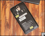 У Lenovo Vibe P1m съемная крышка аккумуляторного блока. Сама по себе процедура совершенно не обременительна, достаточно лишь поддеть ее за небольшой зазор, вынесенный на одной из "боковушек". Выполнение противоположного действия также предельно простое.