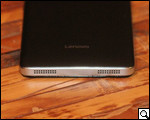 Осматривая переднюю стенку, пользователь заприметит здесь новый логотип Lenovo, а также голографическую метку, подтверждающую оригинальность аппарата.