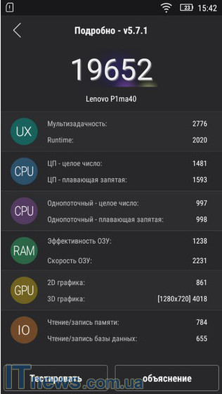 Lenovo Vibe P1m укомплектован достаточно неплохим IPS-дисплеем. Диагональ – 5 дюймов, разрешение 720х1280 точек. Плотность пикселей на дюйм 320ppi.