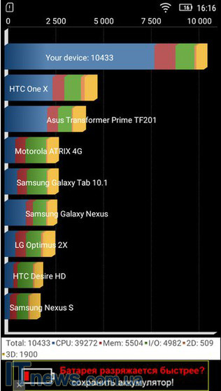 А вот результаты тестирования автономности посредством утилиты "Батарея HD".