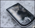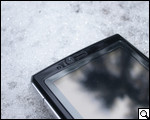 Передняя панель устройства практически полностью покрыта слоем защитного стекла. Стекло проходит как по экрану, который здесь занимает 90% места, так и по клавиатуре. Не закрывает только внутренний динамик, камеру для видеозвонков и датчик освещенности. Стекло, разумеется, марается, при чем очень сильно. Для защиты панели от пачкания производитель предлагает транспортировать и хранить коммуникатор в специальном чехле. Но при этом одно "но". Как мы уже говорили – навигацию в устройстве можно осуществлять как при помощи стилуса, так и с помощью большого или указательного пальцев руки (здесь уж как кому удобнее), что не может не загрязнять экран. Одним словом, без специальной салфетки здесь не обойтись!