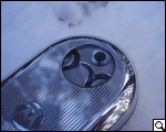 Под экраном AURA (напоминаю, мы рассматриваем терминал в закрытом положении), расположена эмблема компании-производителя, а за ней, в свою очередь, прорези внутреннего динамика. Звук, издаваемый этим девайсом, превосходный, что впрочем, свойственно терминалам от Motorola.