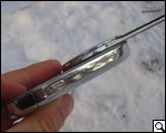 На тыльной стороне корпуса расположено одно из главных достояний терминала – зубчатый механизм, который отвечает за открытие и закрытие терминала. По заявлениям производителя, гарантированное количество открытий и закрытий без сбоев - не менее 100 тысяч раз. Простая математика – к примеру, вы открываете и закрываете терминал по 10 раз в день, то есть 20 в целом, получается, что в общем у вас телефон протянет 5 тысяч дней, что в переводе на годы - чуть более 13 лет. Превосходно, не правда ли?!