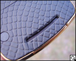 В официальном пресс-релизе компании, посвященном выходу новинки на рынок, говорилось, что тыльная панель аппарата оформлена из материала, подобного змеиной коже. Так это или не совсем, судить не нам. Но, взяв в руки крышечку, прикрывающую аккумуляторный отсек и детально ее рассмотрев, первое что мы отметили для себя, так это то, что действительно орнамент рисунка очень походит на змеиную кожу. Если же провести по нему пальцем, пользователь почувствует небольшие деформации, как это обычно чувствуется при нажатии на материалы из кожи.
